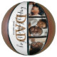 Looking for a fun unique gift for fathers day, this cool basketball is the perfect keepsake for Dads, stepdads, new dads, bonus dads and dog dads. The ball features 3 photos and the template message reads 'HAPPY FATHERS DAY DAD' and is personalized with your childs name. All font styles, sizes and colors can be changed by clicking on the customize further link after personalizing.
