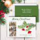 Modern 3 Photo Santa Hat Pine Merry Christmas Holiday Card