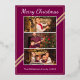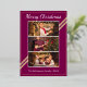 Modern 3 Photos Collage Plum Red Merry Christmas Foil Holiday Card
