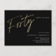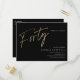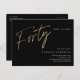Modern minimalist 40th birthday party invitation features stylish faux gold foil number handwritten script Forty and your party details in classic serif font on black background color, simple and elegant, great surprise adult milestone birthday invitation for men and women. the black background color can be changed to any color of your choice.