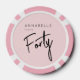 Custom pink poker chips for 40th birthday party celebrations. Customize with your own name. Colors can be edited in the design tool. Please use the message me button below for help with further customization and special requests. © Zoe Chapman Design