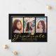 Modern 4 Photo Collage Gold Script Graduation Announcement