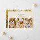 modern simple 4 photo collage script graduation Announcement Card. This elegant card includes a photo collage of 3 photos on the front and 1 on the back with custom text and background.