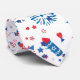 This image is a seamless pattern featuring a festive Fourth of July theme. It's a vibrant and cheerful design that evokes the spirit of American Independence Day. The background is transparent, upon which various celebratory elements are scattered.