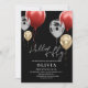 Modern 50th Birthday Black Silver Red Balloons Invitation