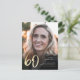 Modern 60th Birthday Photo Black & Gold Script Invitation Postcard