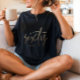 My 11 yo wore adult XL (5’7” 165#). The 8yo is small framed. She wore adult small and tied it in the back. Grandma wore adult large with long sleeve shirt underneath. Tall girl adult medium. Dark haired male adult large. Good quality dark Heather gray, Gildan brand shirt. -it was next up from basic choice and cost about $20 per shirt. Not too thick or thin. Washed and dried well, no major shrinkage. Not see-through. Can wear a bra under it fine. Screen print is just as shown and well done, front and back.