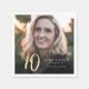 Modern minimalist 70th birthday cocktail party napkin features stylish faux gold foil number in handwritten script and your details in classic serif font on a full bleed photo. Simple and elegant, a great surprise adult milestone birthday decor for men and women.