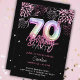 Modern 70th Pink Foil Balloon Fireworks Birthday Invitation