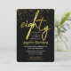 You can download your digital purchase an unlimited amount of times whether it's to print more of the same design, to make edits to the design, or to apply the digital design of your Modern 80th Birthday Black Gold Invitation to other products such as party supplies on Zazzle.