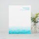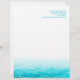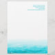 Beautiful blue painted sea with graphic waves sparkle white overlay wedding or everyday letterhead. A beautiful beach, coastal ocean inspired, contemporary, letterhead featuring a unique stylized, hand watercolor sea, on a white background. Beach / ocean feel letterhead. Edit this letterhead with your name and contact details. Uniquely designed and painted by Sarah Trett.