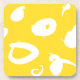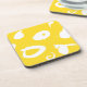 This modern acrilic coaster is designed with white spots and graphic gestures over a plain vibrant yellow orange background.