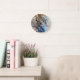 Modern Abstract Art Gold Blue White and Cream Round Clock