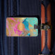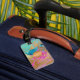 Trendy modern glamorous acrylic brush strokes abstract painting in bold teal turquoise, blue, hot fuchsia pink and faux gold making an elegant feminine luggage tag with a faux metallic gold copper monogrammed geometric circle for a makeup artist | wedding planner | hairstylist | fashion stylist | home interior decorator | designer | architect | boutique owner | beautician | lifestyle blogger | painter. +++++++++++++++++++++ Perfect choice for an elegant stylish sophisticated look. ++++++++++++++ Easy to personalize with your business or name initials / monogram and contact details on both sides!
