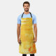 Great color and even though I ordered the kid size, it covers well enough to use during the holidays. I am not a big woman and prefer a shorter apron. I stand 5"6" and the length of the garment goes to mid-thigh. The tie straps fit well at my waist and even though there is no neck strap adjustment, the opening is plenty big enough. I am happy with the size and fit. I am sharing my apron with my 10 year old grandson, too! The color is vibrant and looks good, as shown on the website. The stitching looks strong and reinforced. Photographed is front side and back side of the apron, reinforced straps and coloring. My phone camera may not be the best at showing the details.