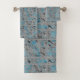 An easy way to refresh your home decor is with some new bath towels. Stylish bathroom towel set, abstract and stripes.