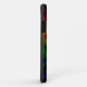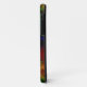 This iPhone case features a colorful abstract rainbow watercolor and ink painting on a black background.