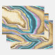 Modern Abstract Blue Gold Agate Geode Gemstone Wrapping Paper Sheets