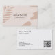 A simple minimalist monogram feminine design with casual script font and modern block font on the pastel blush pink background with abstract elements. You can add your logo and QR code at the back side.