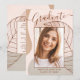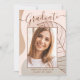 This elegant & chic graduation announcement card, features delicate calligraphy script and beautiful modern abstract artwork in shades of blush pink and taupe. The graduates photo highlights the front of the card while the back of the card offers personalized text spaces for information about the graduation and future journey.