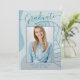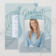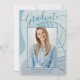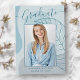 This elegant & chic graduation announcement card, features delicate calligraphy script and beautiful modern abstract artwork in shades of icy aqua blue. The graduates photo highlights the front of the card while the back of the card offers personalized text spaces for information about the graduation and future journey.