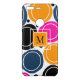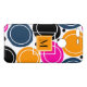 A bright and bold design of abstract circles in shades of pink, teal and orange. A centred monogram on an orange square is available to customize the design. Stylish and eye catching.