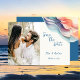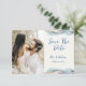A Photo Save The Date Wedding Announcement designed in bright abstract color accents. The front text includes: Save the Date, The Bride and Groom's First Names and Wedding Date on a white background. The reverse includes the text: Details to Follow and your Wedding Website on a matching blue background with abstract color accent. To personalize, simply insert your favorite couple photo into our easy template, replacing the sample image. Move the photo to the left and ensure it covers the area. Next, insert your text details into our template, replacing the sample. Be sure to view the entire Modern Abstract Color Wave Wedding Collection for matching cards and accessories. Background colors can be changed using our Color Picker Tool.