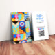 This vibrant design was created by me using colorful abstract geometric shapes. The text is all easily customized including the QR Code, with your own URL of choice.