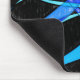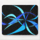 A modern abstract black and blue mousepad with an cool colored pencil drawing of a wavy blue finned fish.