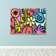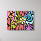 Modern Abstract Cubism Art canvas wall art. Multicolored modern art outlined in black includes abstract images of flowers, face, eye, stripes, scrolls, in blues, greens, purples, yellow, dusty rose and rust. Puts the wow factor in your decor. Personalize it by choosing Tile This Image and enlarging or reducing the images. You can also add text and images of your own.