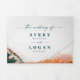 Modern Abstract Ethereal Watercolor Dark Teal & Copper Fall Tri-Fold Wedding Invitations. This modern wedding invite includes all the options you need in one design. RSVP Card, Information, Couple Photo, Wedding Invite, all in one! It is beautify hand-painted with rich colors that are perfect for fall or winter. Shown in the Dark Teal Wedding Color Palette colorway of: Dark Teal Peacock Green, Copper Rust, Dusty Gold, Almond Grove, and Bisque Beige. With faux Metallic glitter foil details, and a gorgeous signature script font with tails, the ethereal watercolor wedding collection is sure to make your wedding memorable and beautiful!