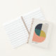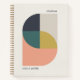A minimalist modern abstract art journal notebook with an elegant geometric design in muted colors of coral pink, mustard gold yellow, teal green, navy blue and natural soft taupe gray. The perfect accessory for a minimal contemporary home office.