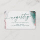 Modern Abstract Ethereal Watercolor Emerald Green Wedding Registry Enclosure Cards. This modern card is beautify hand-painted with rich colors that are perfect for Winter or fall. Shown in the Emerald Wedding Color Palette colorway of: Dark Emerald Green, Mauve Purple, Sangria Dark Plum, Rose Gold, and Raindrop Blue Green. With faux Gold Metallic glitter foil details, and a gorgeous signature script font with tails, the ethereal watercolor wedding collection is sure to make your wedding memorable and beautiful!