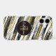 Here's an elegant abstract design that resembles paint brush strokes in black, gray, and white, combined with faux gold glitter embellishment. The stripes are placed diagonally across the surface of the case. At the center is a gold lined black circle banner with your monogram in gold, and your name in white script. Eye catching! *Abstract pattern by ThingsByLary.