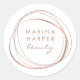 Elegant monogram stickers feature an abstract circle logo in faux rose gold, encircling your name and/or business name in modern calligraphy script and block lettering on a white background. NOTE: THERE IS NO GOLD FOIL ON THIS PRODUCT. The rose gold effect is created using subtle color variations that mimic the look of foil.
