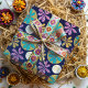 Presenting our exclusive contemporary patterned gift wrap, adorned with abstract florals and oversized circles set against a rich dark blue backdrop. This vibrant and chic wrapping paper offers a trendy way to present your gifts with flair, perfect for any occasion