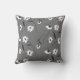 Modern white floral pattern on grey pillow.