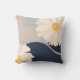 Modern abstract floral design features two large white daisy flowers with other abstract shapes on gray background.