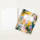 Colorful abstract flower planner in yellow, purple, and green colors for 2025 with a monthly overview and weekly pages for 12 months of the year. Personalize it with your name or any message on the front cover and choose between a soft or hardcover, and a gold, black, or white spiral.