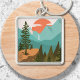 Introducing our Modern Abstract Forest, Mountains, and Sunrise Keychain. Featuring landscape illustration in vintage style. Suitable for as a gift for nature, camping, and hiking enthusiasts.