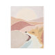 Modern abstract art in neutral / pastel earth tones features barking fox overlay on hills and sun background