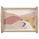 Introducing the Modern Abstract Fox & The Hills Serving Tray by Art by Angela—a captivating blend of art and utility that brings a serene, nature-inspired aesthetic to your home.This large serving tray (19" x 14" x 2.625") features a modern abstract design in neutral and pastel earth tones, showcasing a stylized fox set against rolling hills and a sunlit backdrop. Printed in full color on a high-quality hardboard panel with a glossy finish, the tray is available in your choice of black or natural wood finishes, each equipped with handles on two sides for easy carrying. Perfect for entertaining, organizing, or as a decorative piece, this tray combines functionality with artistic flair.