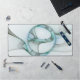 Modern Abstract Fractal Art Blue Turquoise Gray Desk Mat