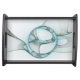Modern Abstract Fractal Art Blue Turquoise Gray Serving Tray