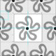 The modern floral fabric is decorated with a repeating abstract pattern of a dancing gray flower with a black center. Easily customize the white background to the color that best suits your special project. A fun idea for gardeners!