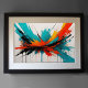 Modern Abstract Impressionism Minimalism. The colors are red black white yellow and turquoise