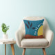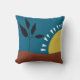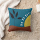 Modern blue trendy throw pillow with colorful abstract illustration of a landscape with a sun, for home , living room, office decoration. Blue brown yellow bold colors for this modern minimalist throw pillow. Simple bold landscape with sun, hills, tree. Trendy simple design with bold colors for women birthday gift, friends, mothers, wifes, new owners.