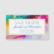 A wedding save the date magnetic business card. Designed with a fancy artistic abstract design. Watercolor painting with the colors mixing and mingling creating a nice flowing marbled pattern. A white frame with a faux gold foil border layered over top with your personalized text written inside.