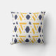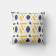 Modern, abstract, navy blue, yellow, white pattern throw pillow