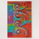 This modern design features an abstract painting of three colorful faces